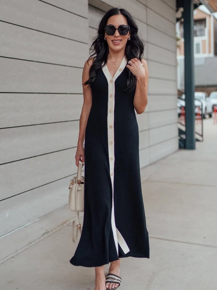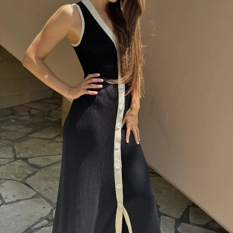 Abito Lungo Senza Maniche Moderno – Eleganza Contemporanea che Scivola con Te