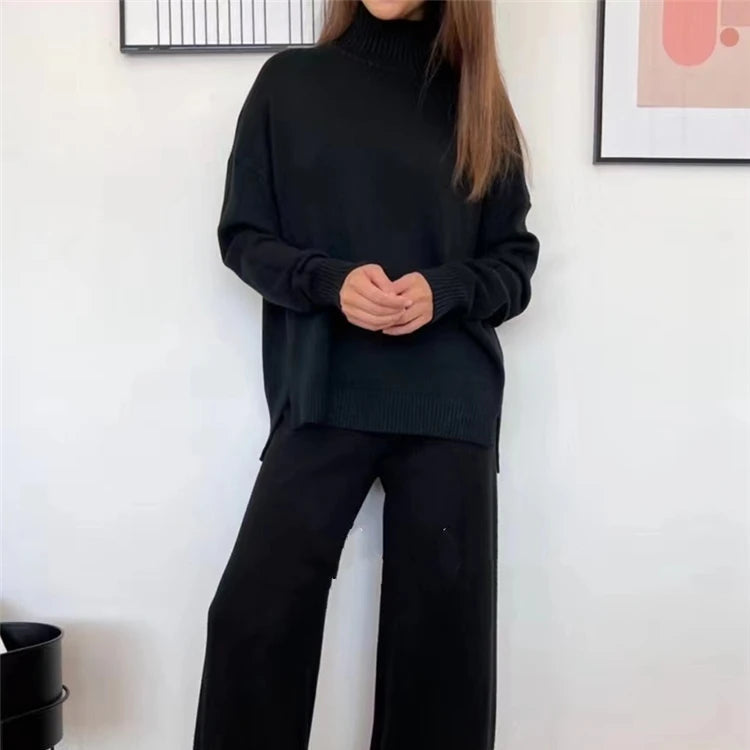Aggiungi eleganza e comfort al tuo guardaroba autunno/inverno con questo set casual. Realizzato con tessuto a maglia acrilica ad alta elasticità, offre una vestibilità ampia e confortevole, perfetta per le giornate più fredde.