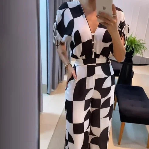 Tuta Intera da Donna con Stampa Geometrica – Stile e Comodità in un Unico Capo